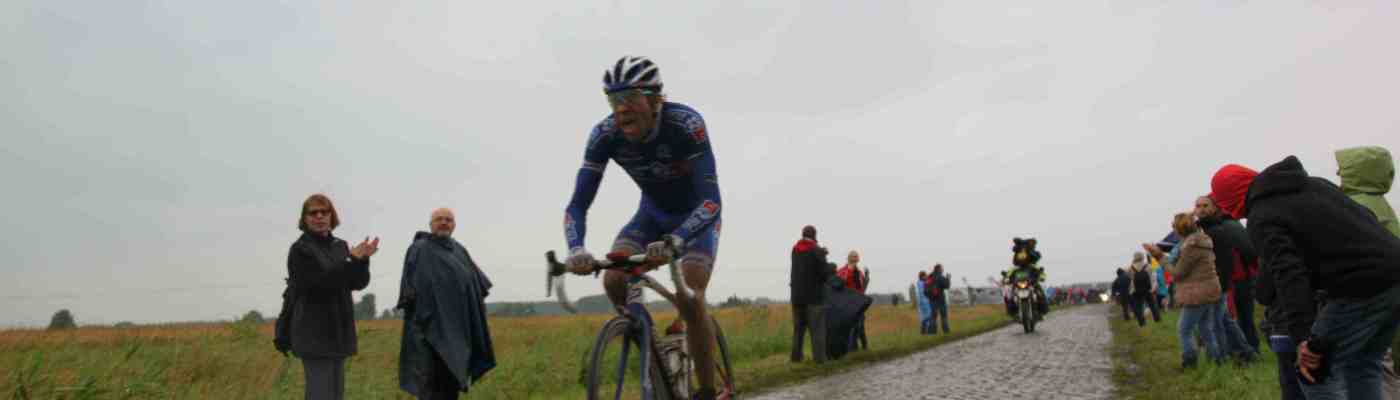 Tijdens de vijfde etappe regent het zo hard dat de reclamekaravaan niet over de kasseien mag rijden, dus we gaan met camera en fototoestel naar het parcours om beelden van de renners te maken. Op de smalle, natte kasseienstroken vol kuilen en hobbels wordt het direct duidelijk waarom de Tourorganisatie de toeschouwers waarschuwt om hun handen thuis te houden. De renners komen op hun smalle bandjes met denderende vaart over de kleine steentjes. De wegen zijn ongeveer zo breed als één auto, dus de sporters zijn altijd binnen handbereik van de fans. Eén te ver uitgestoken vlag of verkeerd getimed fotomoment kan hier een vreselijke valpartij veroorzaken.